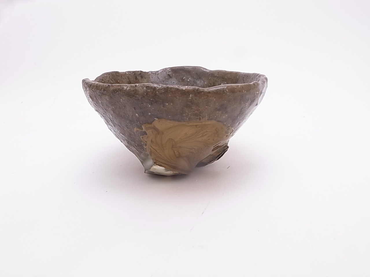 絵具のような釉薬と、高台付近に三角陶片が2つ付いてます。