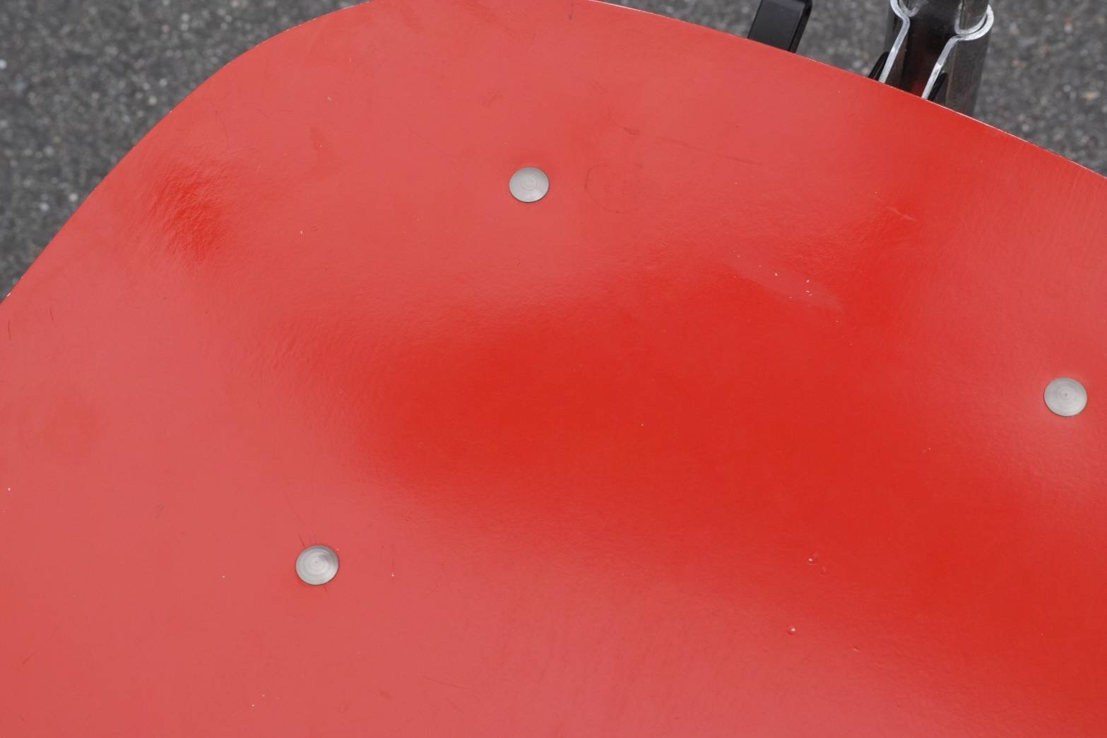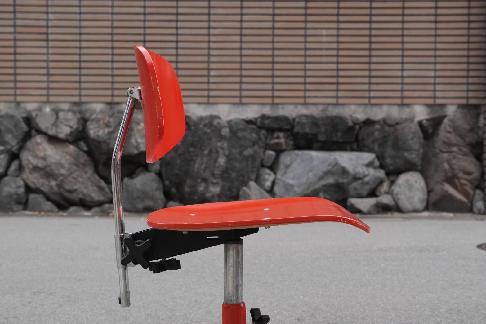 この椅子は座面の高さ、背もたれの高さと角度を調整出来る優れものなのですが、そのパーツが黒✖️となっており、赤い本体に対して良いアクセントになってます。