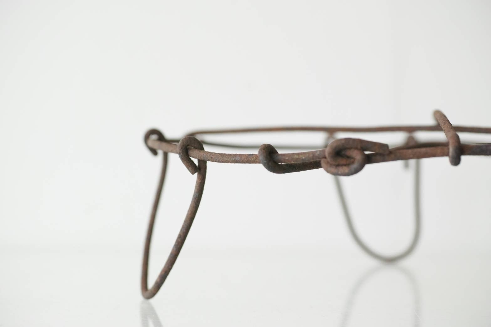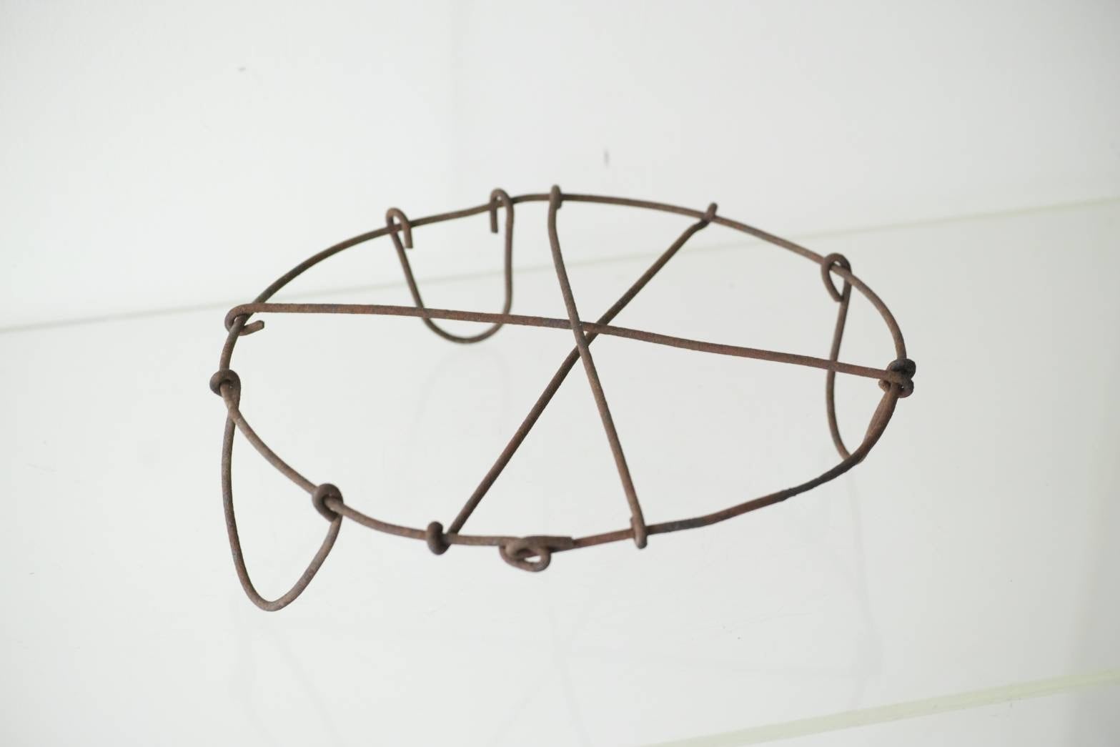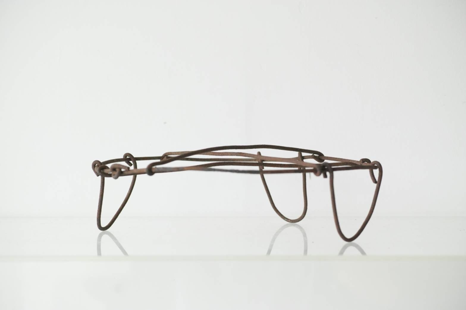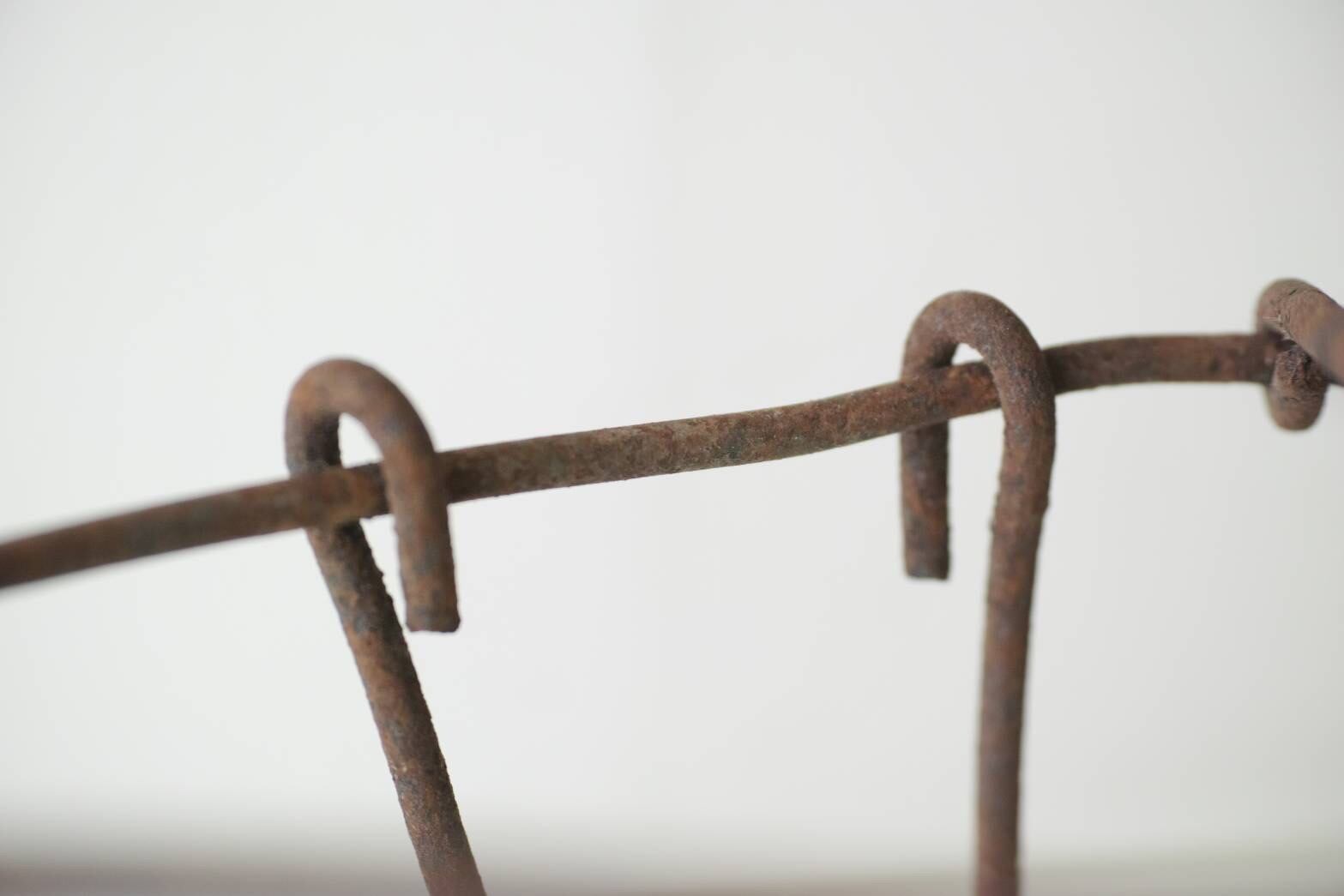 キッチンに掛けられていたらしいのですが、何かを置くにはワイヤーが硬いので平にもならない。脚の位置も不思議。でも手作りして何かしらに使っていたんだと思います。面白い。