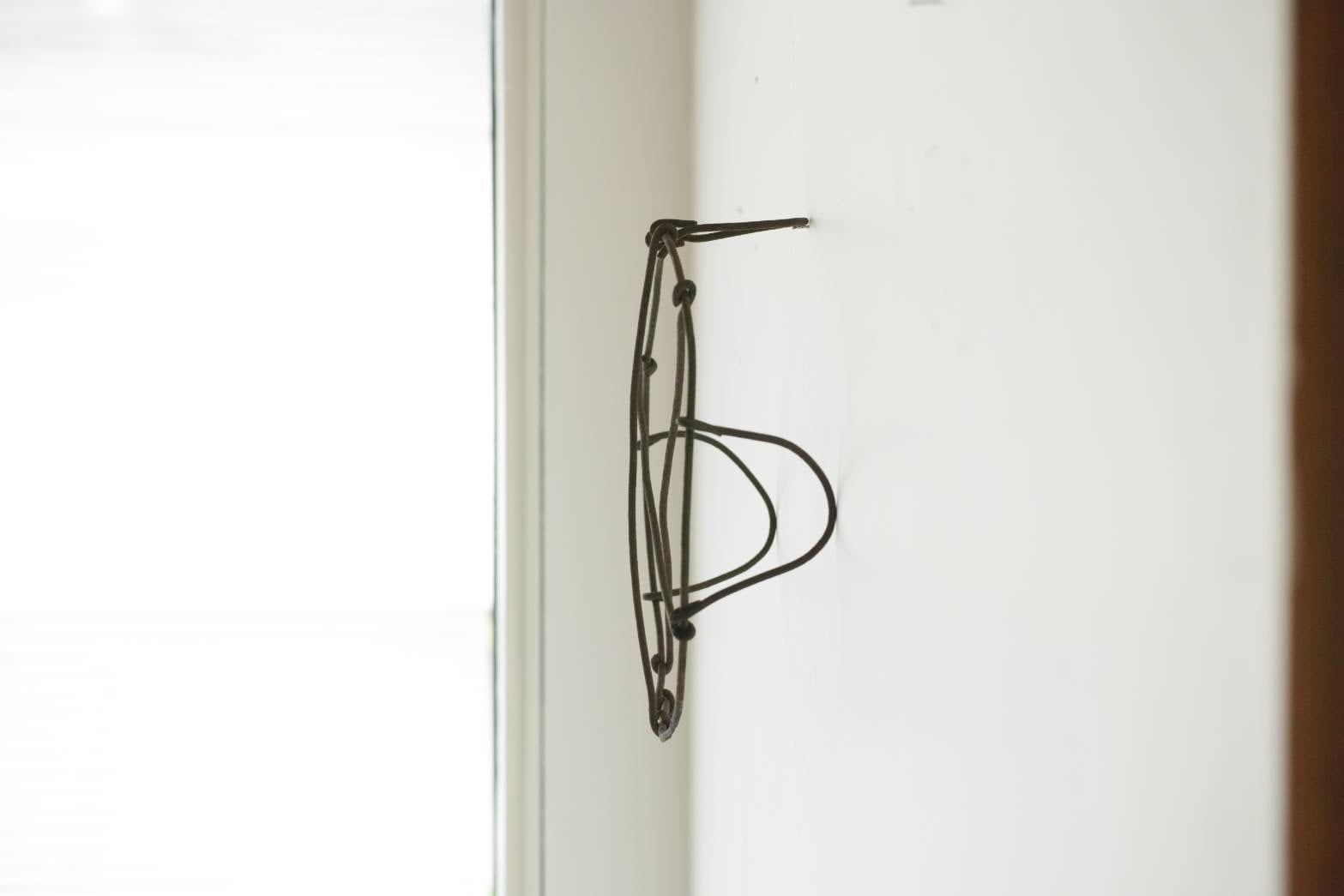 太めのワイヤーで作られた何かを置く台のようなもの。