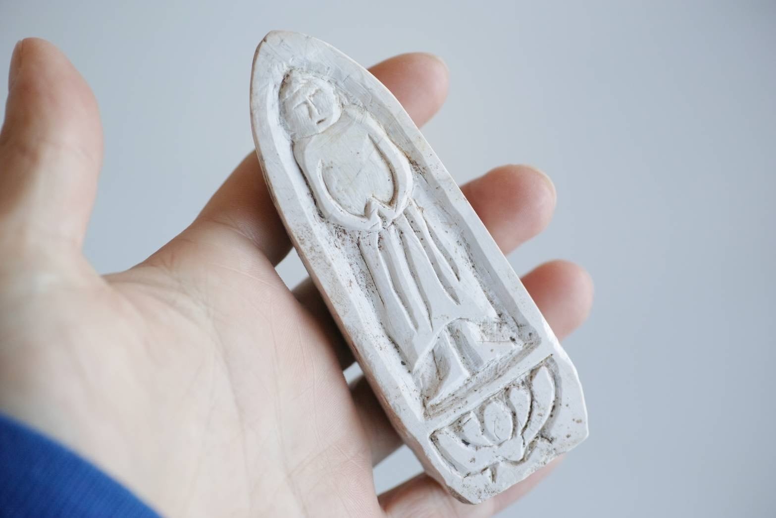 石仏ってもう少し渋い色味のものが多い中、この柔らかい白ってのが買い付けたいと思った要因かもしれません。